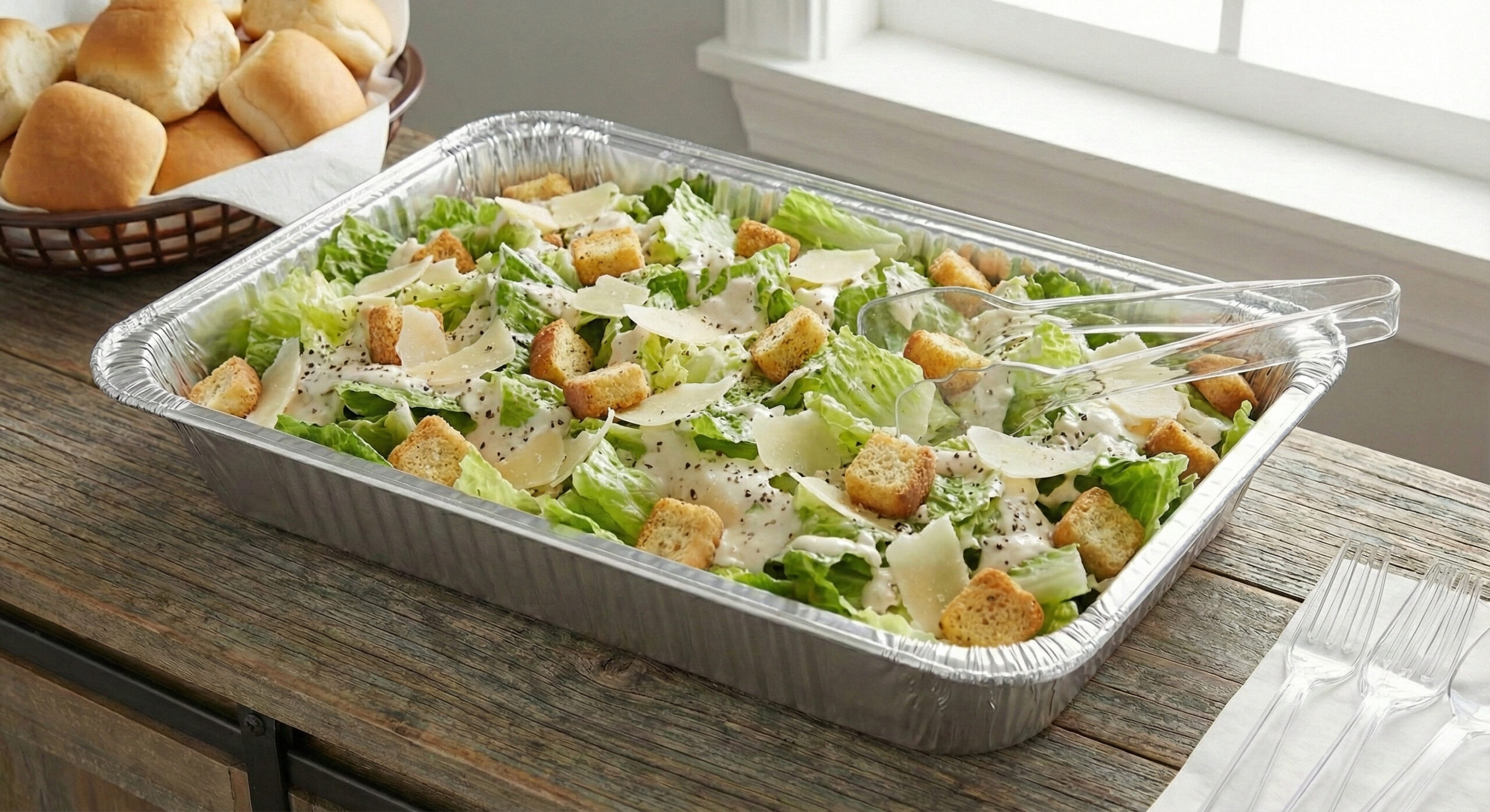 Romaine hearts, parmesan, and croutons with Caesar dressing.