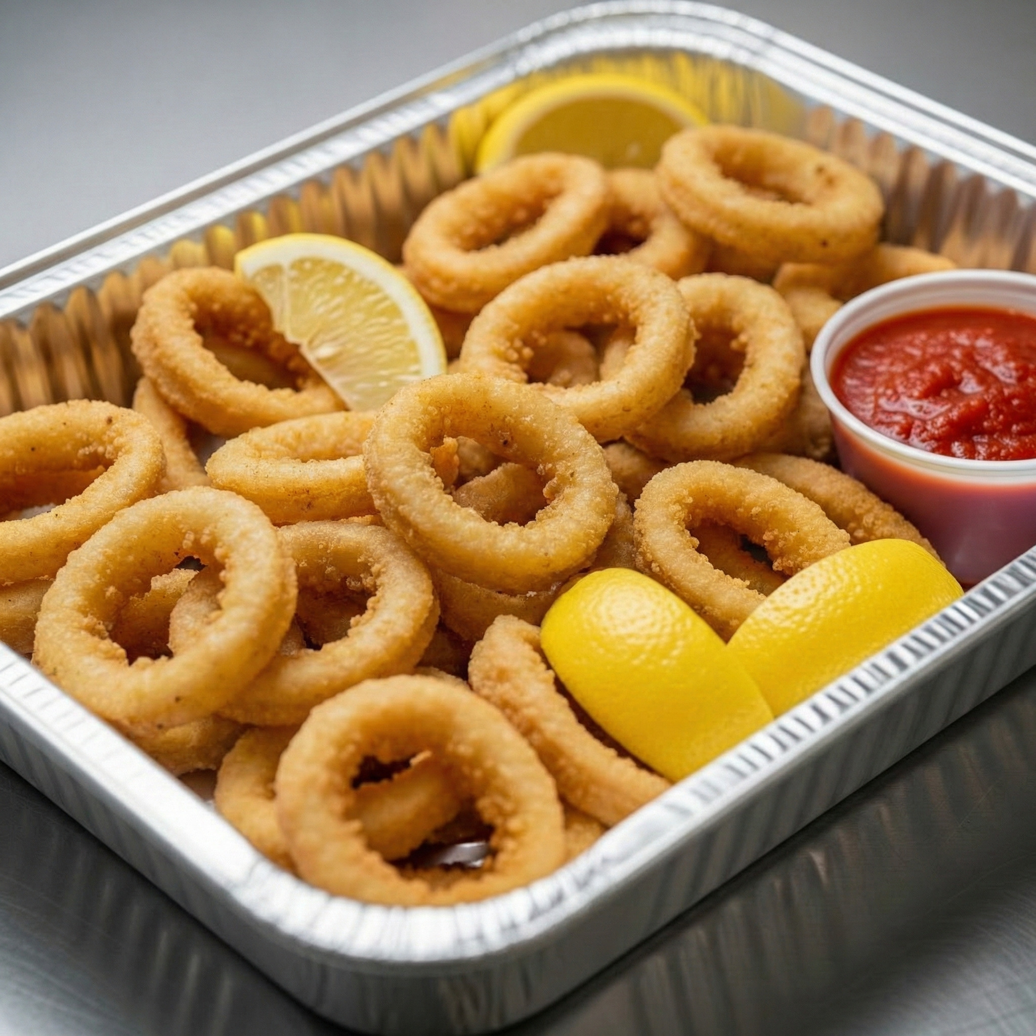 Tender calamari rings fried and served with marinara.