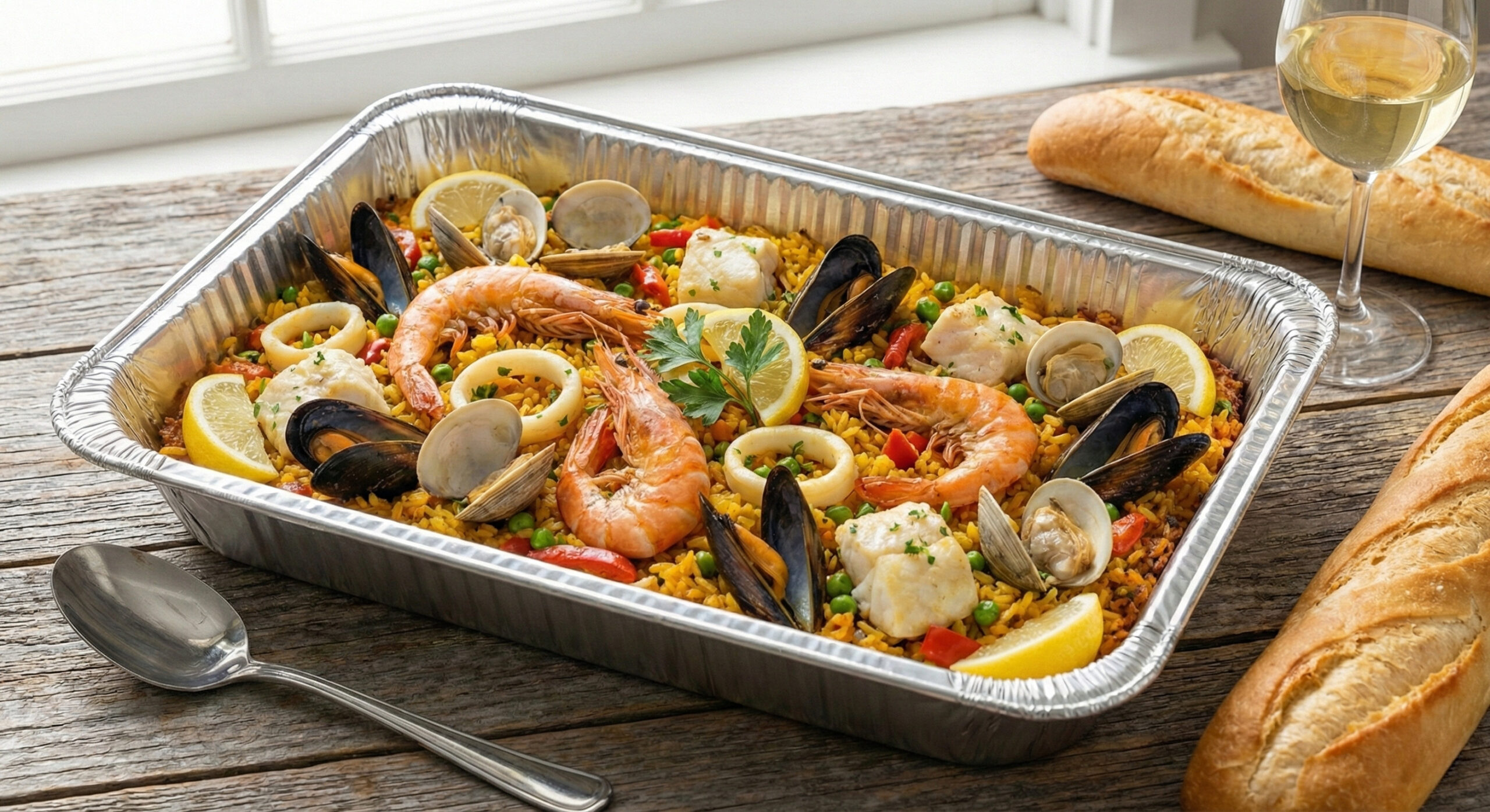 Saffron rice with shrimp, mussels, clams, and chorizo.